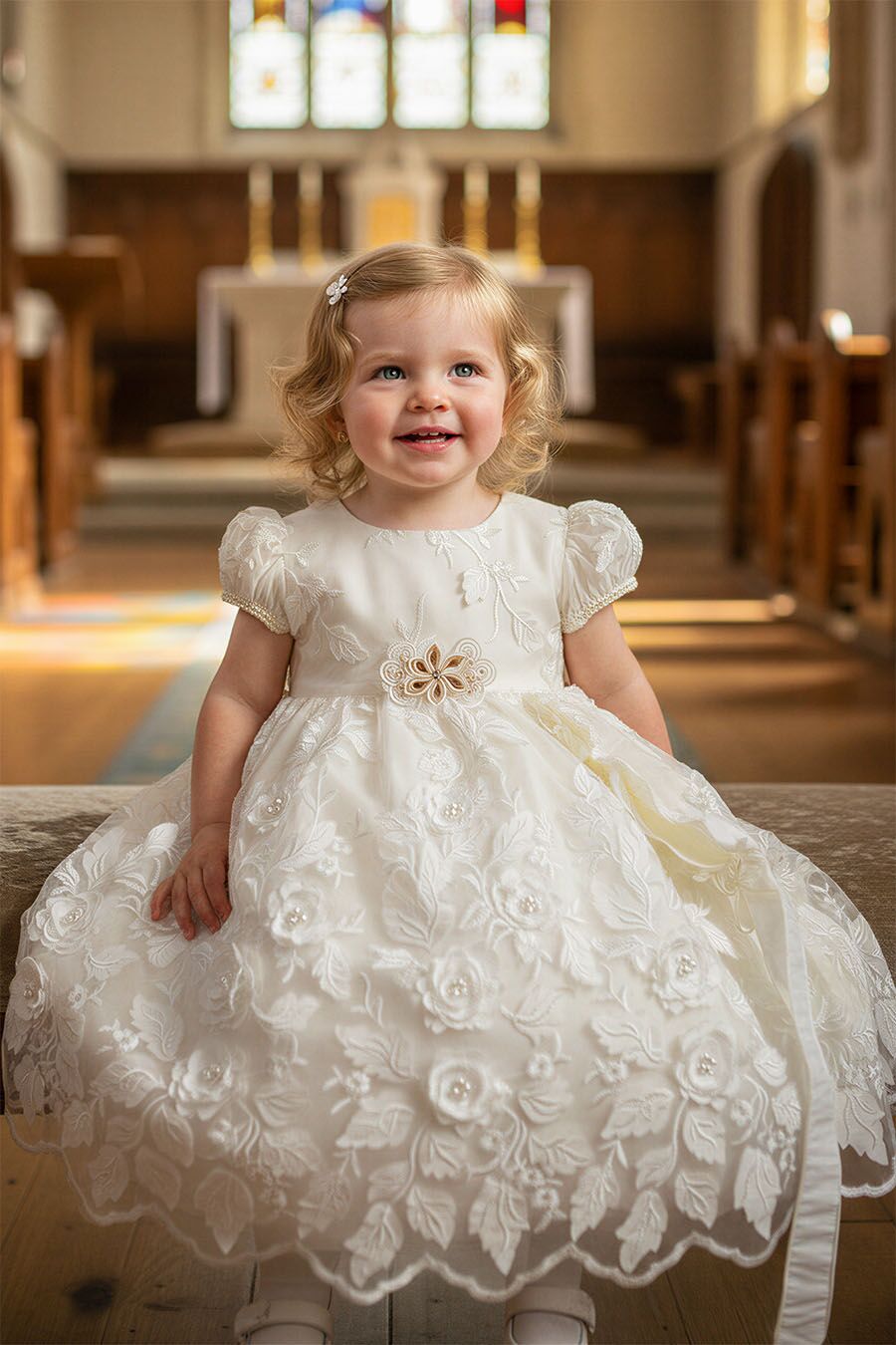 Baby girl’s short ivory baptism gown.