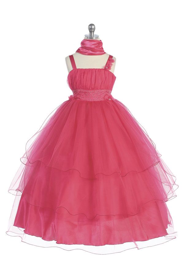 White or Fuchsia dress with rhinestone embellished waisline and straps