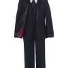 A costumer favorite, black tuxedo suit with black satin lapel