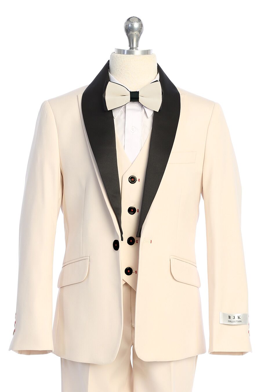 Ivory five piece suit for boys. This is one of our top seller’s this year. Made to make an impression, this colorful suit is made to stand out from the rest. Perfect for any special occasion where the wearer wants to shine.