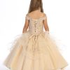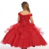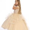 Layered ballgown with embroidered bodice. Multiple ruffles add volume to the dress, perfect for flower girls and pageants.