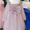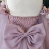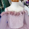 Beautiful mauve dress in a light shade of mauve. The delicate color is perfectly combined with the soft and light tulle that make this dress very airy and light. The Top is adorned with small flowers that line the chest and arms along the drop shoulder strap. The draped tulle adds a renaissance flair to the dress. The back has a Scrunched elastic back that with make this dress easy to put on and fit. The dress has a loop in the bottom part giving this dress a more ample skirt and flare.