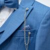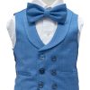 The perfect classic boys suit for all types of occasions. This Light Blue suit for boy’s is a perfect everyday suit. The lapeled waistcoat adds a level of elegance that can be work with out the coat. The double buttons in the vest are reminiscent of a more classic era where looking good and dressing up was a norm. The suit is made with a very soft and silky feeling fabric, thanks to the higher amount of viscose. This suit is made to be enjoyed by the wearer, The extra soft fabric soothes any kid that doesn’t like to wear suit because it’s so comfortable to wear. Other colors available: BLUSH, BABY BLUE, SAGE GREEN 5 Piece set includes: Compositions: Coat, Vest, and Pants Outer shell: 70% Viscose 30% Polyester
