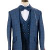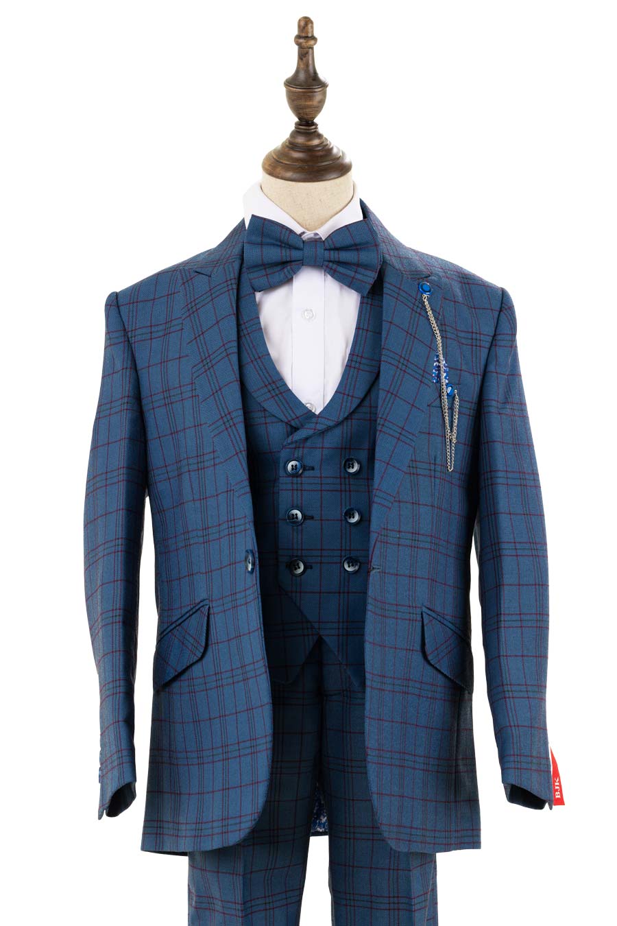 Designer suit for boy’s in a plaid blue color is perfect for a more fashion forward boy. Perfect for special occasions such as birthdays, weddings, school dances, and many more events. Four piece set comes with a coat and vest, pants, and bow-tie.