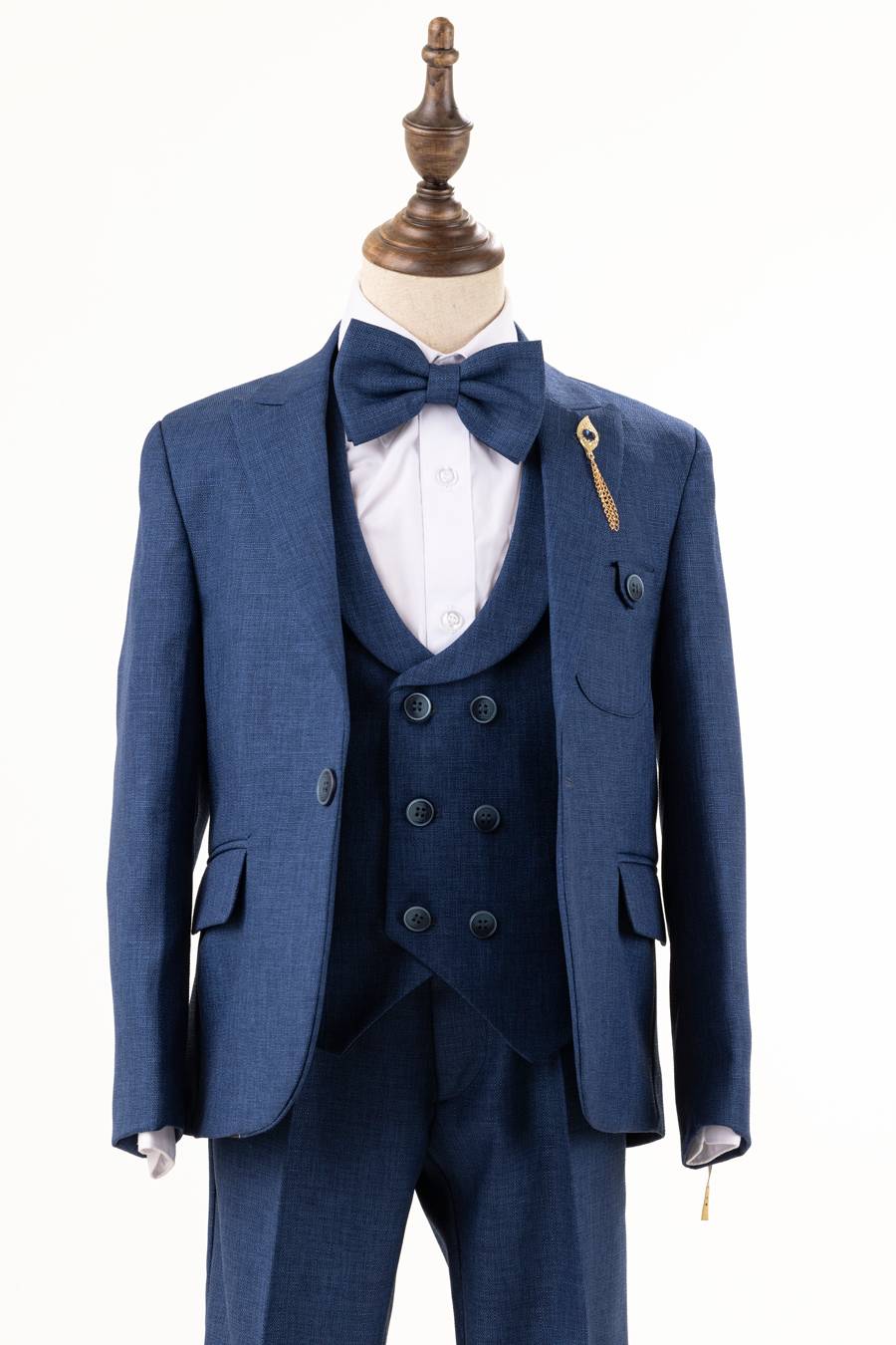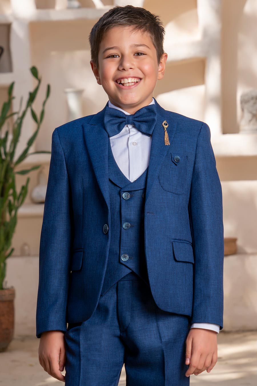 Perfect indigo suit for boys, made with a soft heathered fabric. This intense blue color is perfect for all seasons. The soft fabric makes this suit very comfortable and breathable making it easy to wear in all weathers.