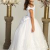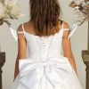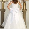 White communion dress with bows and train. Embellished with small discreet but sparkling sequins. A train adds elegance to the beautiful dress and will be for sure the center of attention in any special occasion.
