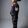 Wholesale boys charro suit in black and silver. Six piece set includes sombrero.