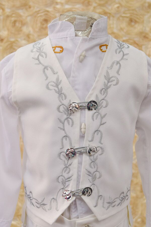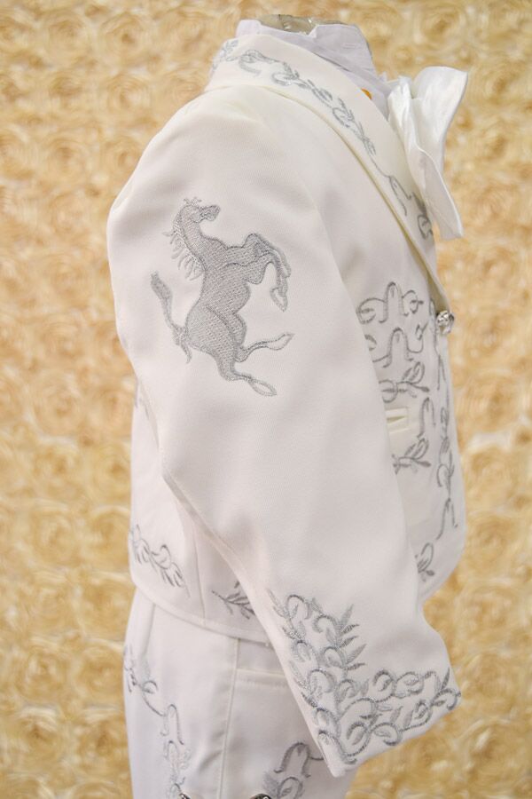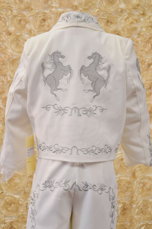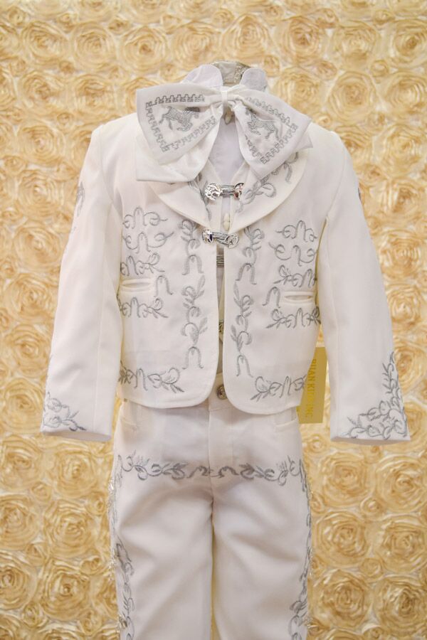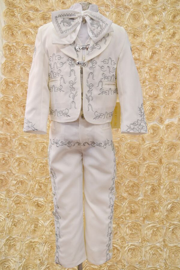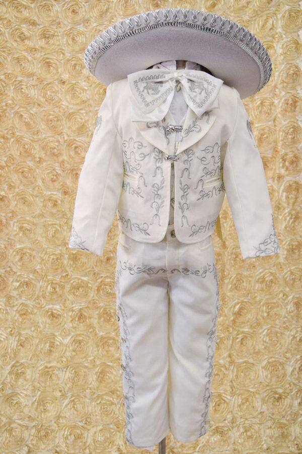 Charro suit for boys, Made with a soft Ivory fabric with silver embroidery.