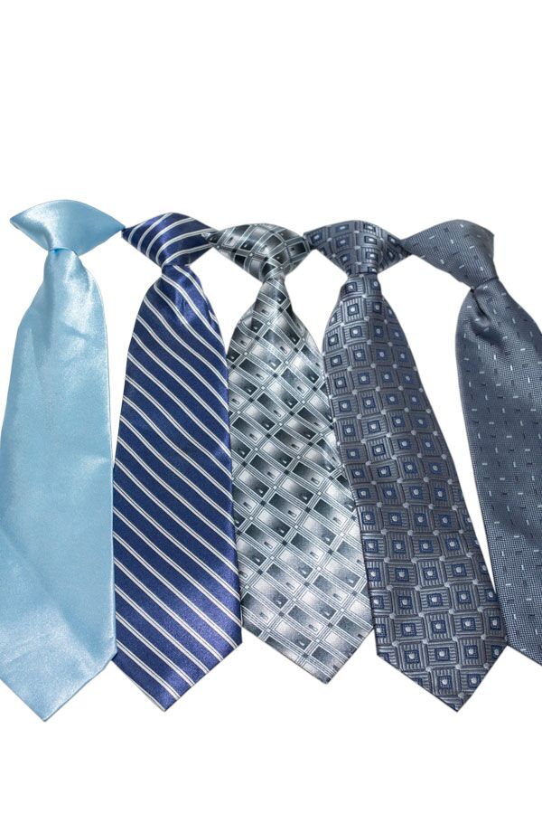 12 pieces varied in colors, designs, and sizes. You may get a mix and match of ties from these colors or others not pictured here. All are with in the Blue tone family.