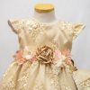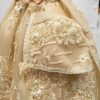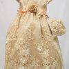 A Beautiful Girls Christening gown with lots of hand made details, like added pearls rhinestones. 4 piece set includes. Removable top layer, underlayer, Bonnet, and removable brooch.