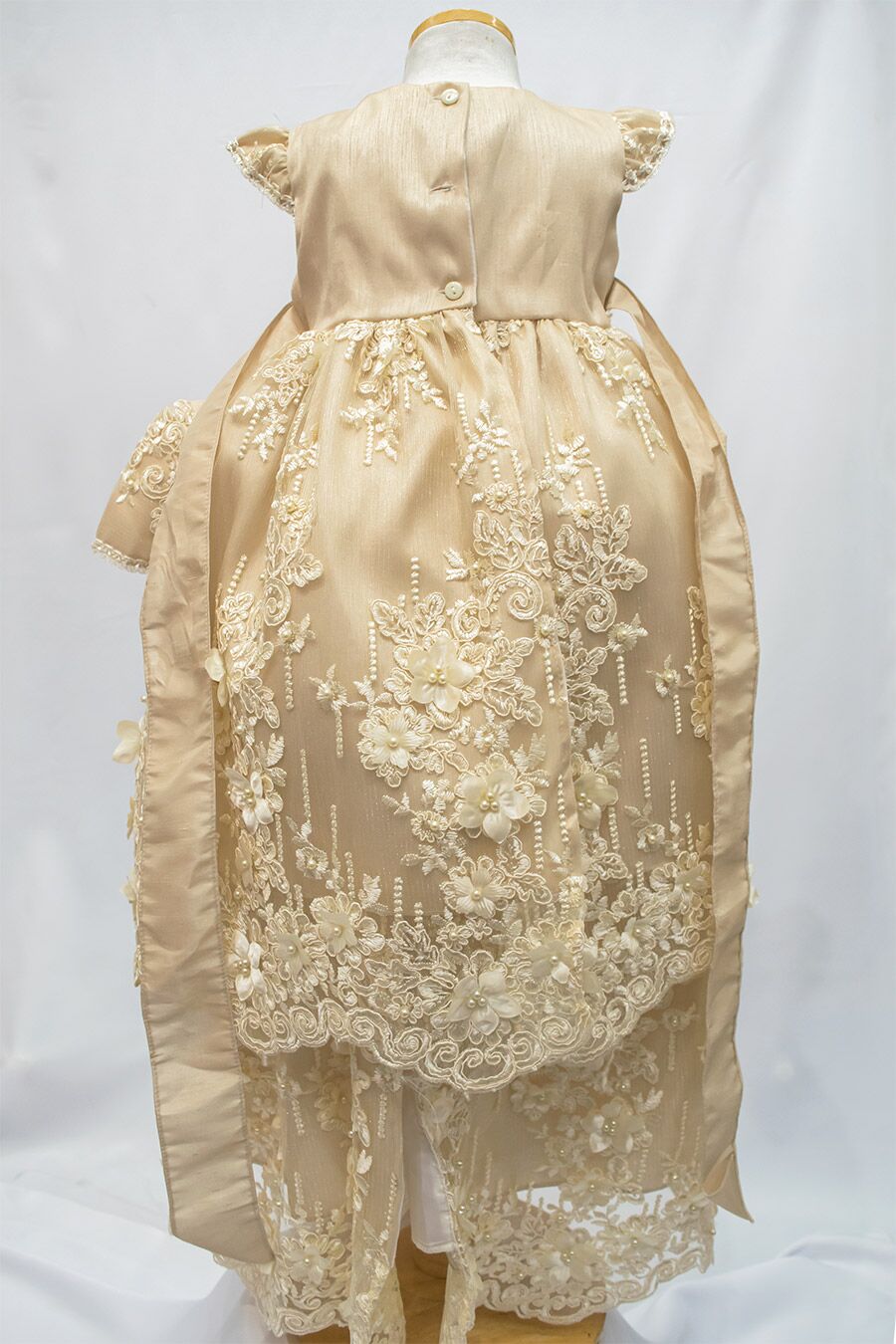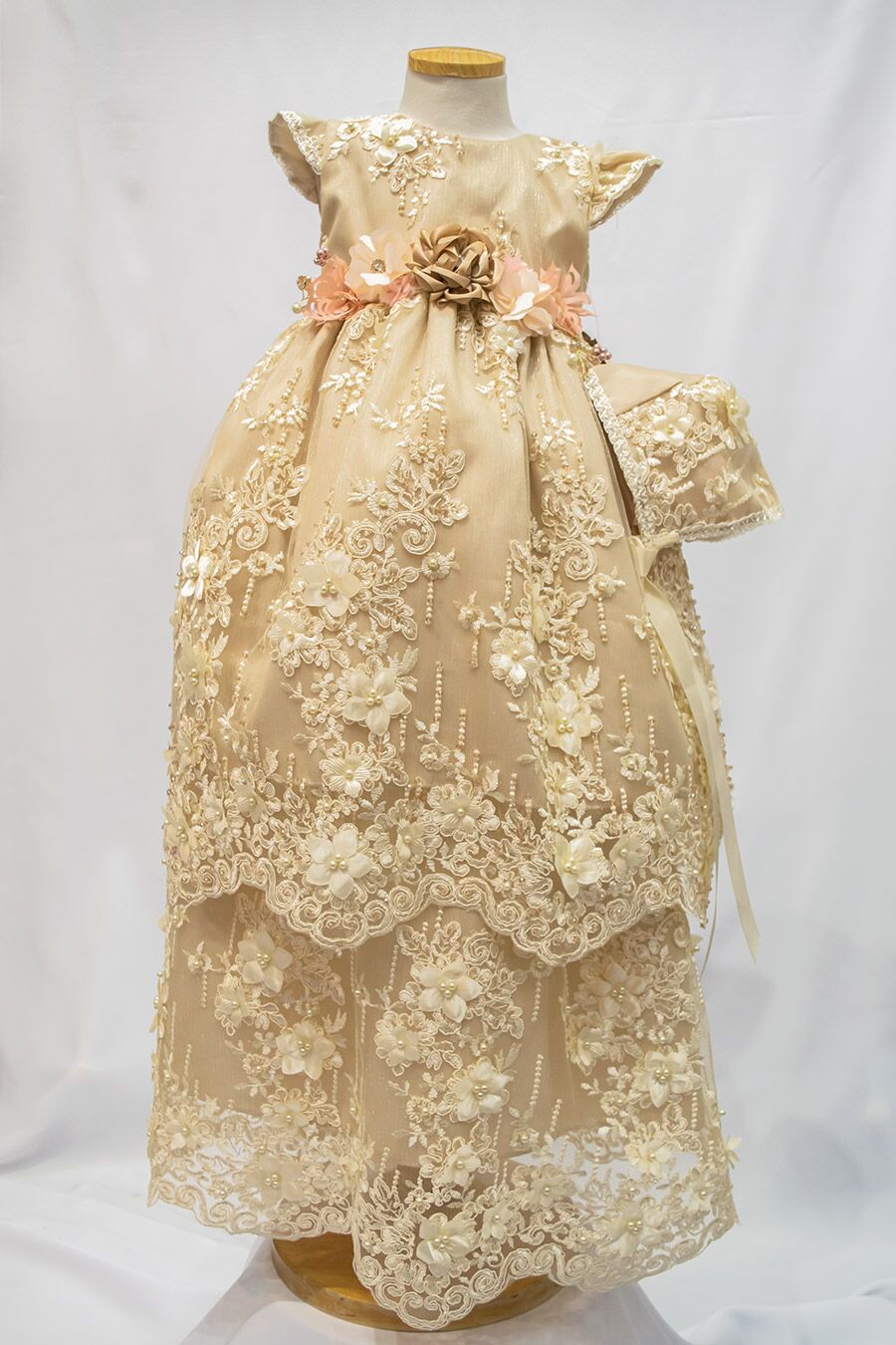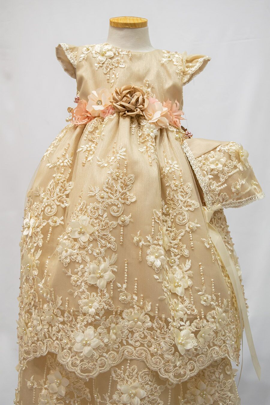 J666 Light Mocha Christening gown with pearls