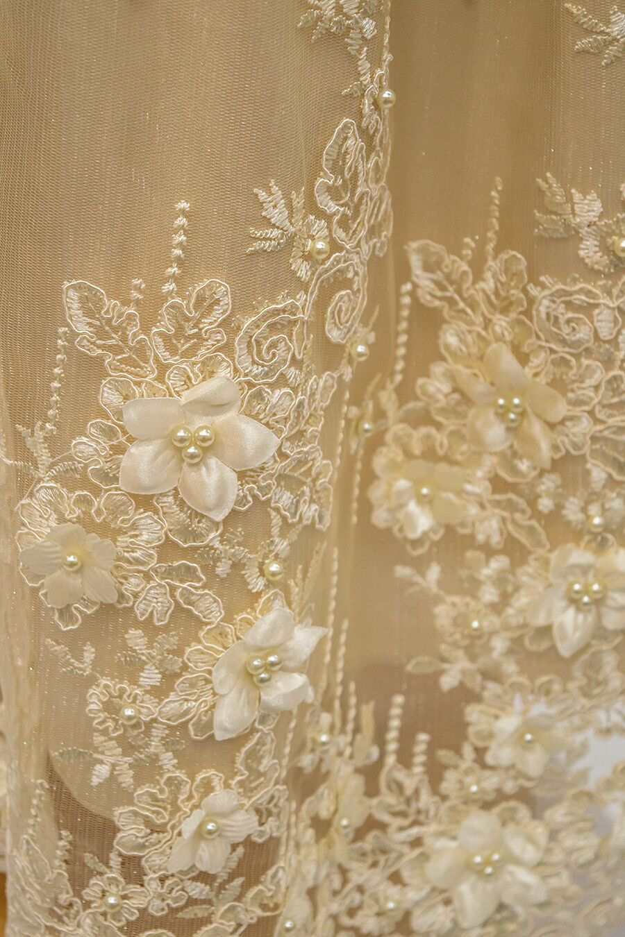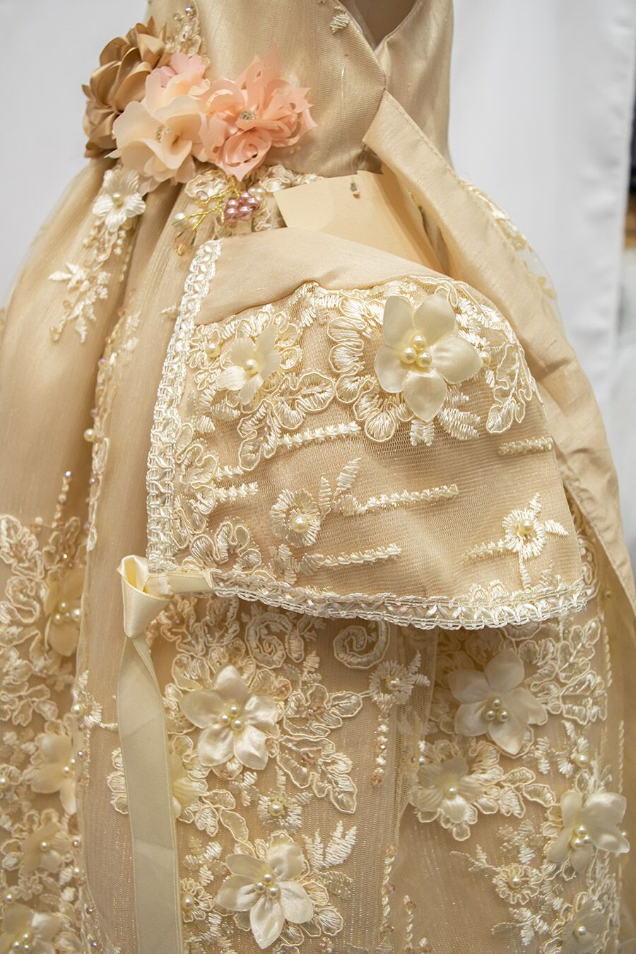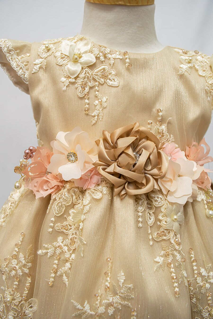 J666 Light Mocha Christening gown with pearls