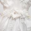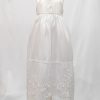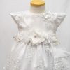 A beautiful girls baptism gown made from a shantung type fabric, made with made hand made appliques and embroidered in a traditional style. The gown in embellished with many pearls that add shine and elegance to the gown.