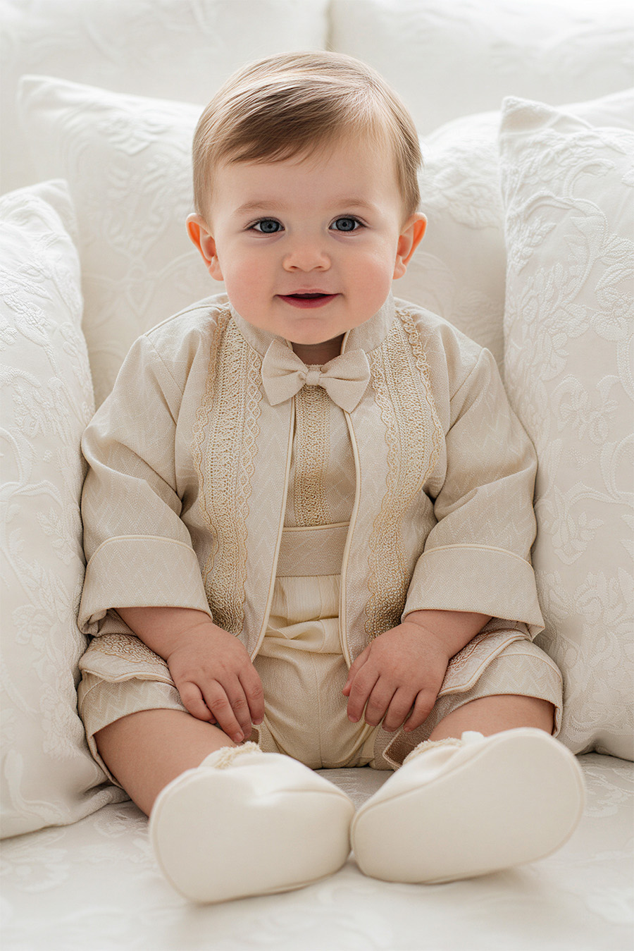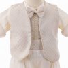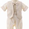 This christening outfit for boys is a multi-piece suit made for boys that includes: